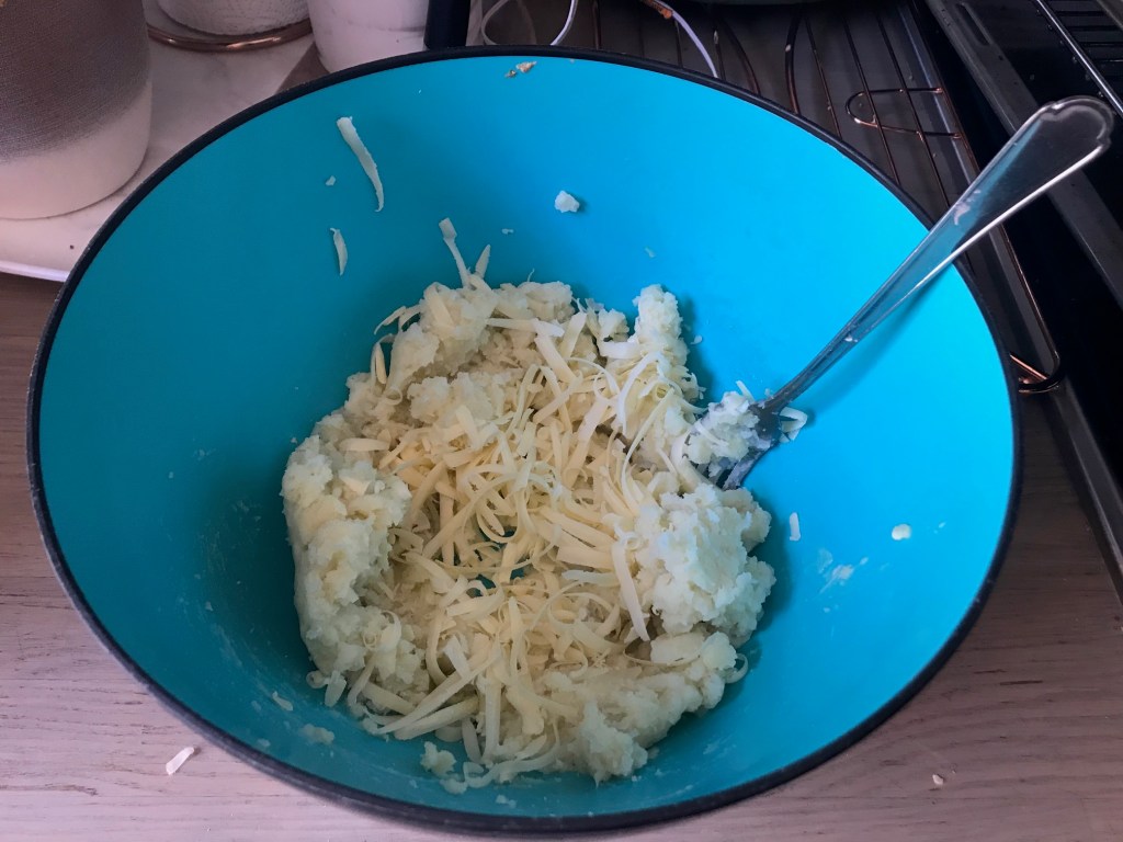 Stumped for lunch or need a quick snack this is so easy to prepare, and you can do it around other morning tasks. Most of the preparation is steaming the potatoes!! Heat your oven to 180 degrees C