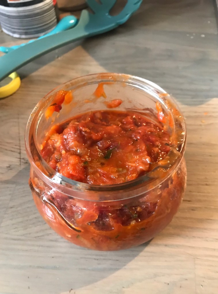 Now get your pasta on, after if has cooked for half the cooking time grab some of that cooking water ¼ cup will do. I then put it in the roasting tin of my vegetables, to get all that yummy flavour. Take the vegetable out first. Strain your pasta and drizzle some extra virgin olive oil on it and get it back in the pan on the heat add your vegetables and chicken ( I heated ours in the microwave) stir add the cooking liquor and turn up the heat for 1-2 minutes, not drop the heat and add your sauce.