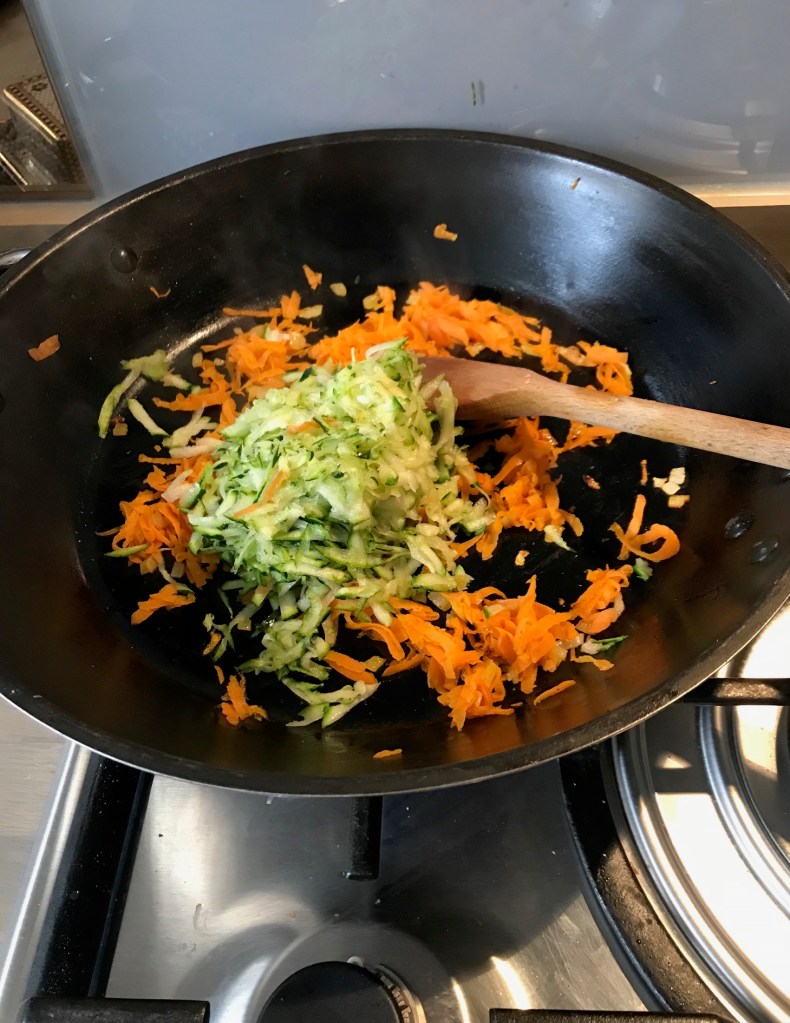 I roasted the vegetables earlier in the day for the children’s food, so it was all ready to go. You can swap out what I used for what you have handy or need to use up, but I do think the butternut and courgette really suited the dish. Mushrooms and sweet potato could be delicious too, experiment with what you think can work.