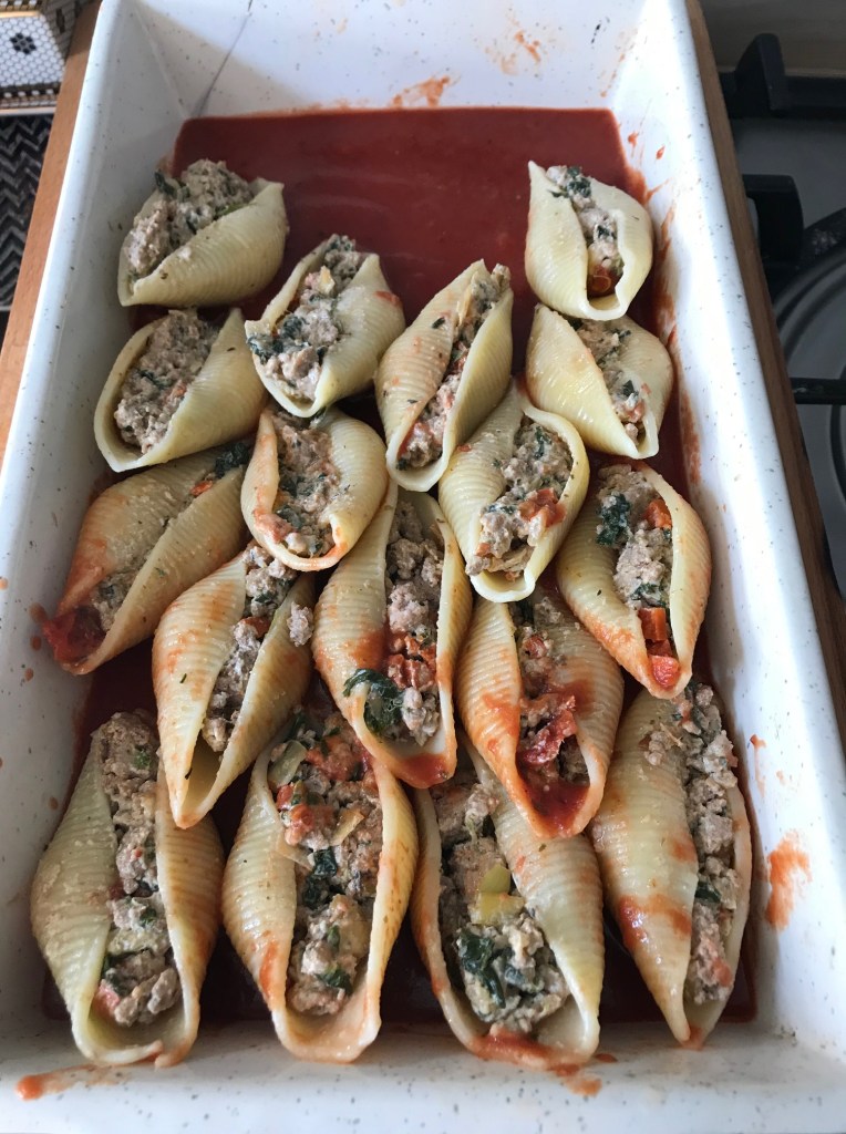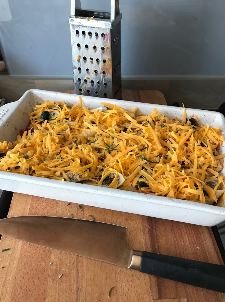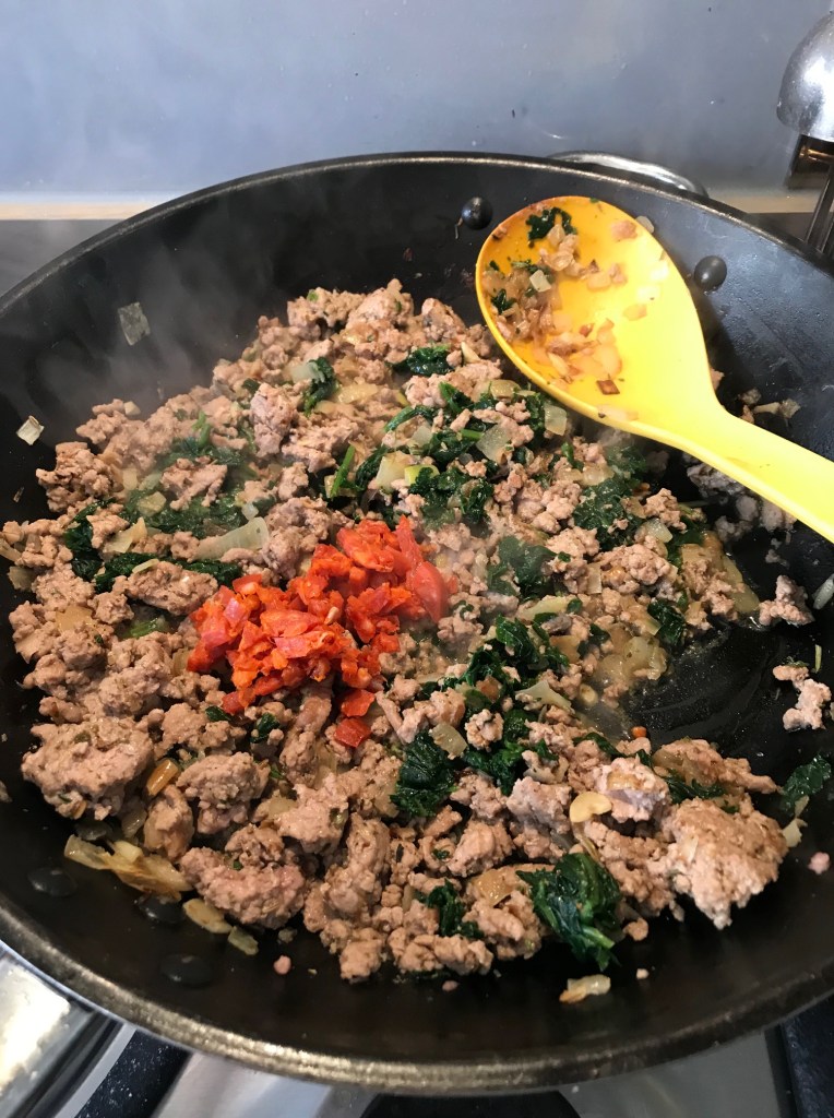 I roasted the vegetables earlier in the day for the children’s food, so it was all ready to go. You can swap out what I used for what you have handy or need to use up, but I do think the butternut and courgette really suited the dish. Mushrooms and sweet potato could be delicious too, experiment with what you think can work.